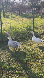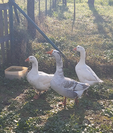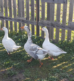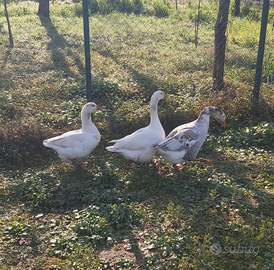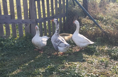 Vendo 3 oche , 1 maschio e 2 femmine (bianche), 55€. L' oca più piccola cammina zoppicando. VENDO TUTTE E 3 INSIEME, PREZZO NON TRATTABILE.