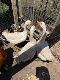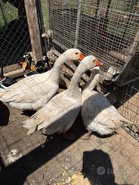 come da titolo vendo Coppia di Oca Kholmogory di 3 anni 300 Trio di Oca del Campidoglio di 7 mesi le femmine già stanno deponendo 150 Maschio di Oca di tula di 3 anni la femmina purtroppo mi è morta 150? accetto anche scambio con pecore suffolk o animali di mio gradimento chiamate o scrivete per foto più dettagliate