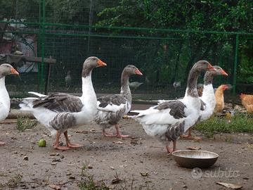 cedo coppia oche riproduttori di pura razza Pezzata Veneta. E' possibile scegliere i due soggetti tra 2 maschi e 3 femmine di un anno e mezzo di vita