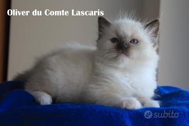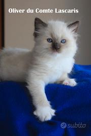 Disponibile da metà giugno, presso allevamento amatoriale "du Comte Lascaris" a Sanremo uno stupendo cucciolo di razza RAGDOLL (avrà pedigree ANFI) E' nato l'8 marzo e sarà ceduto solo dopo aver compiuto tre mesi (metà giugno 2026). E' di colore CHOCOLATE MITTED con le zampine e il mento bianchi. Le ultime foto sono quelle del papà (DEAR STELLAN) e della mamma (NIKITA) E' possibile vederlo anche con una videochiamata con Whatsapp al numero 3392090927 NENA. (i nostri gatti sono di razza RAGDOLL diversi dai MAINE COON, dai PERSIANI e dai SACRI DI BIRMANIA. Non alleviamo altre razze, solo RAGDOLL)