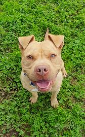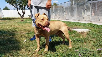 Vi presentiamo un buonissimo pitbull, si chiama OMAR ha circa 6 anni (nato intorno al 15/01/2018). Ha un carattere molto dolce con le persone ma non va d'accordo con altri cani e con i gatti. La precedente proprietaria non poteva più prendersi cura di lui e lo ha abbandonato nel box di una pensione.