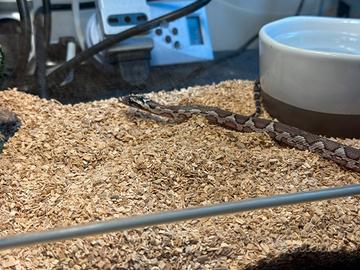 Cedo, serpente del grano come da foto, con teca ed accessori, quest'ultimi vanno bene ancora per tantissimo tempo! Tolgo solo per mancanza di tempo.