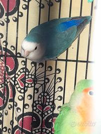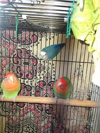 Vendo 3 pappagalli inseparabili con gabbia e cibo 130 euro