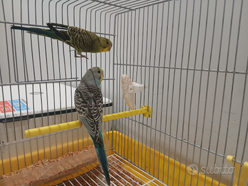 Salve cedo questa bellissima coppia di cocoriti allevati a mano molto docili li tolgo per mancanza di tempo prezzo affare li do con tutta la gabbia completa PREZZO AFFARE