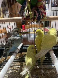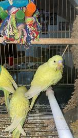 Vendo piccoli di cocorita ... che sto allevando ? a mano sono 3 fratelli disponibili 2 gialli e uno blu ... sono tutti stati allevati a mano e stanno continuando a prendere due beccate al giorno .. mattina e sera Più panico e bastoncino all'uovo Chi è interessato, li vendo sia che prendono le ultime due inbeccate che a fine svezzamento Sono abituati all'uomo, ti riconoscono sono molto giocherelloni ti cercano ancora non spiccano il primo volo ma corrono come dei razzi .. per venirti appresso sono dolcissimi adatti ai bambini Solo manti degli animali devono trovare una famiglia che li ami Rispetto x loro prima di tutto Vendo a 40€ da finire di imbeccare 60€ a fine svezzamento Anche disponibilità del sent x inbecco