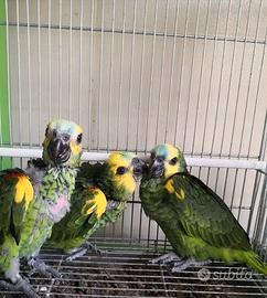POSSIBILITà DI PRENOTAZIONE E CONSEGNA PRESSO LA MOSTRA AGRICOLA CAMPOVERDE CHE SI TERRà DAL 24 AL 26 APRILE E DAL 1 AL 3 MAGGIO 202 6 ALL'AREA FIERE APRILIA(LT). Allevamento amatoriale dispone di pulli di AMAZZONI FRONTE BLU E FRONTE GIALLA DA IMBECCO I piccoli iniziano ad essere imbeccati dal ventesimo giorno di vita , in modo da instaurare da subito un ottimo rapporto con l'uomo, sono pappagalli che oltre la particolarità di avere colori molto sgargianti e intensi ,hanno un carattere molto socievole e giocoso con tutti, ed imparano a parlare benissimo. I piccoli possono essere presi subito da imbecco , o per i meno esperti prenotarli a svezzamento più inoltrato ... Verranno ceduti con tutti I regolari documenti CITES,Ed anello inamovibile. Per chi ne avesse bisogno forniamo tutto il necessario per lo svezzamento , dalla pappa da imbecco agli accessori. I prezzi possono variare in base all'età e alla fase di svezzamento dei singoli soggetti. Possiamo effettuare consegne ove richiesto. Su richiesta è possibile portare i soggetti a svezzamento inoltrato o completo . Soggetti provvisti di documentazione Cites ove necessario. Per info ed ulteriori foto contattare Davide 3930683305 anche whatsapp. POSSIBILITà DI PRENOTAZIONE E CONSEGNA PRESSO LA MOSTRA AGRICOLA CAMPOVERDE CHE SI TERRà DAL 24 AL 26 APRILE E DAL 1 AL 3 MAGGIO 202 6 ALL'AREA FIERE APRILIA(LT).