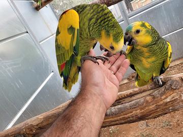POSSIBILITà DI PRENOTAZIONE E CONSEGNA PRESSO LA MOSTRA AGRICOLA CAMPOVERDE CHE SI TERRà DAL 24 AL 26 APRILE E DAL 1 AL 3 MAGGIO 202 6 ALL'AREA FIERE APRILIA(LT). Allevamento amatoriale dispone di pulli di AMAZZONI FRONTE BLU E FRONTE GIALLA DA IMBECCO I piccoli iniziano ad essere imbeccati dal ventesimo giorno di vita , in modo da instaurare da subito un ottimo rapporto con l'uomo, sono pappagalli che oltre la particolarità di avere colori molto sgargianti e intensi ,hanno un carattere molto socievole e giocoso con tutti, ed imparano a parlare benissimo. I piccoli possono essere presi subito da imbecco , o per i meno esperti prenotarli a svezzamento più inoltrato ... Verranno ceduti con tutti I regolari documenti CITES,Ed anello inamovibile. Per chi ne avesse bisogno forniamo tutto il necessario per lo svezzamento , dalla pappa da imbecco agli accessori. I prezzi possono variare in base all'età e alla fase di svezzamento dei singoli soggetti. Possiamo effettuare consegne ove richiesto. Su richiesta è possibile portare i soggetti a svezzamento inoltrato o completo . Soggetti provvisti di documentazione Cites ove necessario. Per info ed ulteriori foto contattare Davide 3930683305 anche whatsapp. POSSIBILITà DI PRENOTAZIONE E CONSEGNA PRESSO LA MOSTRA AGRICOLA CAMPOVERDE CHE SI TERRà DAL 24 AL 26 APRILE E DAL 1 AL 3 MAGGIO 202 6 ALL'AREA FIERE APRILIA(LT).