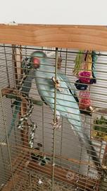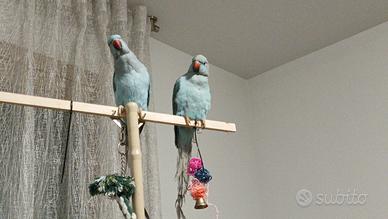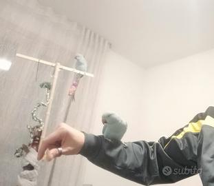 Per mancanza di tempo vendo coppia di peruchetto dal collare non allevati a mano ma la femmina sale sul braccio e prende cibo dalle dita, il maschio osserva con curiosità. Maschio quasi due anni, femmina quasi 1. Se interessati compresa la gabbia