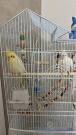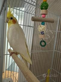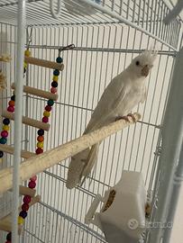 Vendo pappagalli calopsite, nati nel 2024, riproduttivi in primavera, il maschio è il giallo, la femmina (albina) la bianca, sono molto teneri.. stanno sempre insieme, si coccolano e ascoltano, li vendo con gabbia(nuova.) li ho acquistati a dicembre solo che non posso tenerli perché il mio cane non li vuole..( li fa spaventare abbaiando)