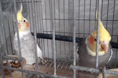 Coppia di bellissimi pappagalli calopsite di circa due anni €70 la coppia Per info contattare Sergio su WhatsApp al 3890457116 Rispondo su WhatsApp