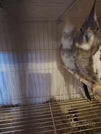 Vendo coppia di pappagalli calopsiti riproduttiva. Vendo maschio calopsite testa bianca e femmina. Vendo completi di gabbia e nido. Vendo a prezzo affare tutto 80€ No perditempo