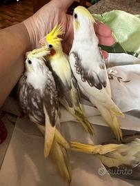 ALLEVATI A MANO : CALOPSITE, un KAKARIKI GIALLO, un INSEPARABILE BLU COBALTO e COCORITE, colorazioni stupende, rare e pregiate DolcissimI, svezzati con amore e molta cura per alimentazione ed igiene, figli di allevati a mano che vivono in casa con noi, abituati ad interagire tra loro, con gli altri pappagalli e con le nostre cagnoline. Selezionati per bellezza, robustezza e carattere, ottima taglia e struttura, controllati dal veterinario: questo vi permette di conviverci tranquillamente e di avere un pappagallo sano, intelligente e affettuoso. Verranno date indicazioni su come prendersene cura in modo corretto FOTO REALI dei piccolini disponibili PER INFORMAZIONI CHIAMATEMI AL 388 62 34 860