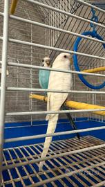 Vendo splendidi cocorite in coppia ancora giovani non hanno neanche un anno di vita, sono abituati alla mano umana ma non addestrati. Vendo con tutta la gabbia (la gabbia è un po vecchia) e accessori quale porta nido e giochi beveraggio e mangiatoie, maschio blu e femmina albina.