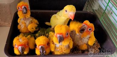 POSSIBILITà DI PRENOTAZIONE E CONSEGNA PRESSO LA MOSTRA AGRICOLA CAMPOVERDE CHE SI TERRà DAL 24 AL 26 APRILE E DAL 1 AL 3 MAGGIO 202 6 ALL'AREA FIERE APRILIA(LT). Allevamento amatoriale dispone di pulli di CONURI DEL SOLE I piccoli inizieranno ad essere imbeccati dal ventesimo giorno di vita , in modo da instaurare da subito un ottimo rapporto con l'uomo, i CONURI sono pappagalli che hanno un carattere molto socievole e giocoso con tutti, ed imparano a parlare... I piccoli possono essere presi subito da imbecco , o per i meno esperti prenotarli a svezzamento più inoltrato ... Per chi ne avesse bisogno forniamo tutto il necessario per lo svezzamento , dalla pappa da imbecco agli accessori. I prezzi possono variare in base all'età e alla fase di svezzamento dei singoli soggetti. Possiamo effettuare consegne ove richiesto. Su richiesta è possibile portare i soggetti a svezzamento inoltrato o completo . Soggetti provvisti di documentazione Cites ove necessario. Per info ed ulteriori foto contattare Davide 3930683305 anche whatsapp POSSIBILITà DI PRENOTAZIONE E CONSEGNA PRESSO LA MOSTRA AGRICOLA CAMPOVERDE CHE SI TERRà DAL 24 AL 26 APRILE E DAL 1 AL 3 MAGGIO 202 6 ALL'AREA FIERE APRILIA(LT).