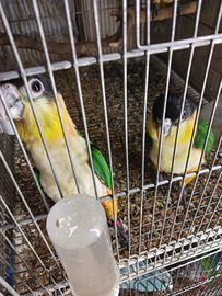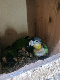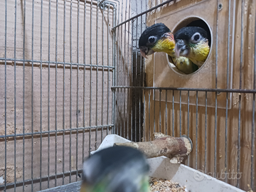 Cedo 3 coppie di pappagalli caicco testa nera 2 riproduttive più 3 soggetti giovani di 5 mesi allevati a mano solo in blocco