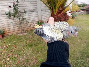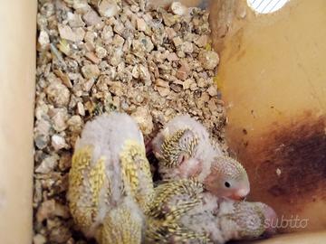 Cedo pulli da imbecco di svariate specie e mutazioni come calopsiti f.p,albino,lutino, ancestrali, faccia bianca ecc.., parrocchetti dal collare, inseparabili, kakariki gialli, blu cobalto,verdi, pezzati, grigi e cocorite varie.i pulli stanno nascenfo dal 20 marzo e saranno pronti per iniziare l imbecco nella prima decade d Aprile...in base alla schiusa la disponibilità del soggetto può variare...valuto scambi con coppie d inseparabili, calopsiti albine,lutine o cannella ,oppure femmine di kakariki blu o crema con fattore fallow.valuto proposte congrue.contattare solo se realmente interessati no perditempo giocherelloni o affaristi.prezzi a partire da 25 in su..in base a specie e mutazioni