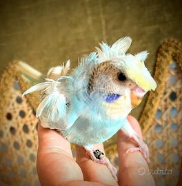 COCORITE E INSEPARABILI KAKARIKI, uno giallo e uno acqua marina, ALLEVATI A MANO, colorazioni stupende, rare e pregiate DolcissimI, svezzati con amore e molta cura per alimentazione ed igiene, figli di allevati a mano che vivono in casa con noi, abituati ad interagire tra loro, con gli altri pappagalli e con le nostre cagnoline.