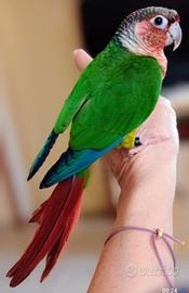 Un meraviglioso PYRRURA PIN APPLE,CALOPSITE, INSEPARABILIw, COCORITE e KAKARIKI BLU, ALLEVATI A MANO, colorazioni stupende, rare e pregiate DolcissimI, svezzati con amore e molta cura per alimentazione ed igiene, figli di allevati a mano che vivono in casa con noi, abituati ad interagire tra loro, con gli altri pappagalli e con le nostre cagnoline Selezionati per bellezza, robustezza e carattere, ottima taglia e struttura, controllati dal veterinario: questo vi permette di conviverci tranquillamente e di avere un pappagallo sano, intelligente e affettuosi I piccoli hanno imprinting umano non sono allevati in condivisione. La selezione del carattere dei genitori e l'imprinting umano garantiscono soggetti equilibrati e tranquilli, socializzati con l'essere umano Verranno date indicazioni su come prendersene cura in modo corretto FOTO REALI dei piccolini disponibili disponibilità limitata per seguirli in modo adeguato PER INFORMAZIONI CHIAMATEMI AL 388 62 34 860