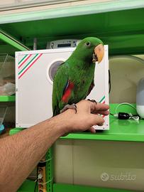 Allevamento amatoriale dispone di pulli di ECLETTO MASCHI e FEMMINA DA IMBECCO I piccoli iniziano ad essere imbeccati dal ventesimo giorno di vita , in modo da instaurare da subito un ottimo rapporto con l'uomo, sono pappagalli che oltre la particolarità di avere colori molto sgargianti e intensi ,hanno un carattere molto socievole e giocoso con tutti, ed imparano a parlare benissimo. I piccoli possono essere presi subito da imbecco , o per i meno esperti prenotarli a svezzamento più inoltrato ... Verranno ceduti con tutti I regolari documenti CITES,Ed anello inamovibile. Per chi ne avesse bisogno forniamo tutto il necessario per lo svezzamento , dalla pappa da imbecco agli accessori. I prezzi possono variare in base all'età e alla fase di svezzamento dei singoli soggetti. Possiamo effettuare consegne ove richiesto. Su richiesta è possibile portare i soggetti a svezzamento inoltrato o completo . Soggetti provvisti di documentazione Cites ove necessario. Per info ed ulteriori foto contattare Davide 3930683305 anche whatsapp