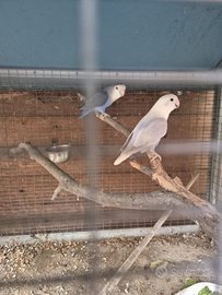 cedo coccorite albine e bianche azzurre molto docili. cedo coppia di inseparabile bianca azzurra piu 3 piccoli di 3 mesi. altra coppia maschio crema e femmina verde rossa. prezzi interessanti