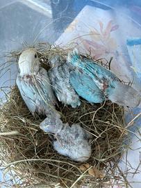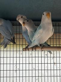 Disponibili soggetti serie blu dí agapornis roseicollis. Nati e cresciuti all'esterno. Anellati Foi. Non allevati a mano. Disponibili sia coppie adulti sia giovani di diverse mutazioni.