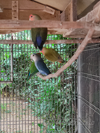 Cedo pappagalli inseparabili allevati a mano (i 2 delle prime tre foto) e gli altri cresciuti in voliera NON allevati a mano.