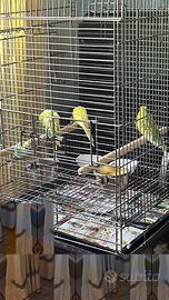 Causa trasferimento in altra regione devo dismettere un il mio allevamento di ondulati inglesi. Ho quasi venduto tutto mi sono rimasti solo 3 pappagalli come in foto. Manca solo quello celeste venduto ieri. Vendo tutto insieme e regalo voliera alta 150-170