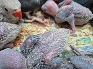 Grande Alessandrino parrocchetti dal collare cleartail e monaci