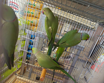 1 coppia e due maschi di parrocchetti dal collare ancestrali (verdi)