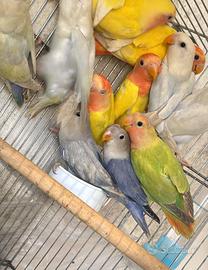 Disponibili pappagalli inseparabili roseicollis novelli di varie mutazioni.Opalino lutino-lutino-Pallid-albino-blu-viola. Possibilità di formare coppie giovani non consanguine. Disponibilità anche di pulli da crescere allo stecco .Alcuni soggetti sono sessati perché nati da coppie sessolegate. Per qualsiasi info chiamare al 3490790428