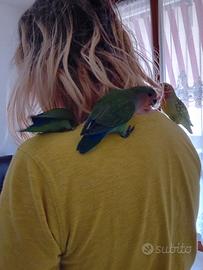 Pappagallini inseparabili in copia, allevati a mano , ma dovrebbero abituarsi al nuovo padrone, sono giovanissimi, meno di un anno di vita, il prezzo indicato per uno singolo