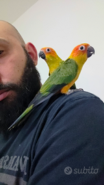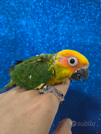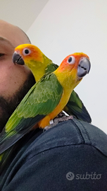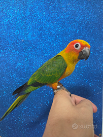 Vendo Conuro del Sole, soggetto sano, vivace e abituato alla presenza umana. Esemplare seguito quotidianamente, con piumaggio compatto e colori molto accesi.