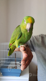 Vendo bellissimo pappagallo amazzone fronte gialla allevato a mano anni 7 con regolare documentazione cites premetto che per mancanza di tempo non viene più toccato però ogni tanto lo faccio uscire dalla gabbia e sta tranquilla e una femmina la vendo con tutta la gabbia prezzo 700. Per info contattatemi niscemi.