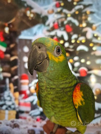 Abituato al contatto umano, con buona capacità di apprendimento e vocalizzazione. Ideale per chi cerca un pappagallo intelligente e affettuoso.
