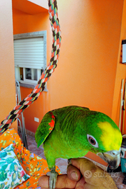 Disponibile bellissimo pullo di amazzone fronte gialla allevato a mano da piccolo con anello e documento CITES X info solo contatto tel 3927726139 Non rispondo a messaggi e mail