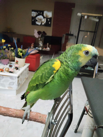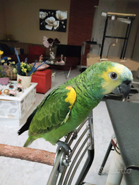 Disponibile bellissimo maschio di amazzone fronte blu xanthoptery di un anno allevato a mano da piccolo con anello certificato di sessaggio e documento CITES X info solo contatto tel 3927726139 Non rispondo A MESSAGGI E MAIL