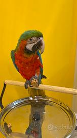 Il pappagallo è svezzato con frutta ed estrusi. Colori e forme stratosferici, un carattere unico, socievole con tutti.
