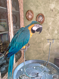 Cedo pappagallo ara di poco più di 3 anni in ottima salute molto socievole dolce e parla..(anche troppo).. abituato a trespolo ,sulla spalla molto giocarellone e gli piace cantare
