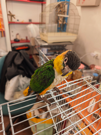 disponibili ultimi due bellissimi fantastici pappagalli allevati a mano caicco testanera soggetti italiani anellati e completi di documenti introvabili in questo periodo vista la stagione molto simpatici giocherelloni e socievoli dolci ottimi per grandi e piccini famiglia disponibile 1 maschio e 1 femmina bella coppia prezzo scontato pappagalli, conuro, parrocchetto