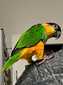 Vedo Pappagallo Caicco Testa Nera, maschio con sessaggio molecolare, documentazione CITES, di anni 2, allevato a mano, possibile riproduttore. Il pappagallo viene ceduto con pappagalliera e trasportino.