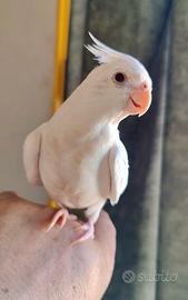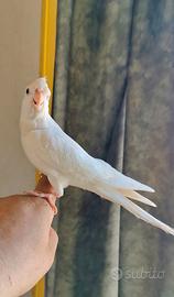 Vendo papagalo Calopsite allevamento a mano. E una femmina di un anno. Molto dolce abituata con bambini. 100non trattabile