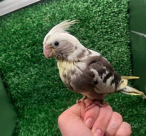 Disponibile dolcissima Calopsite allevata a mano, di quasi 2 mesi, cresciuta con amore, attenzioni e tanto contatto umano.