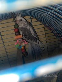 Bellissimo esemplare di pappagallo Calopsite bianco e grigio, sesso maschio, pappagallo non allevato a mano, prezzo poco trattabile