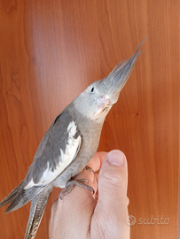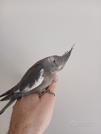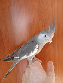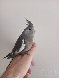 Cedo calopsite di circa 2 mesi, faccia bianca maschio, allevato a mano, molto dolce,ama le coccole e stare sulla spalla, sono pappagalli indicati x chi ha bambini appunto perché sono molto docili.