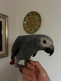Disponibile pappagallo Cenerino (Psittacus erithacus) allevato a mano molto docile e affettuoso, appena svezzato. Esemplare munito di anello chiuso, certificato di sessaggio (MASCHIO), certificato veterinario di buona salute ed in regola con la normativa Cites (certificato CITES Fonte C). Possibilità di consegna gratuita lungo il percorso Pescara-Bologna-Verona-Bolzano o, con un piccolo contributo spese, verso il resto d'Italia, isole comprese.