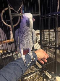 Per motivi di salute siamo costretti a vendere un pappagallo Ceneribo di 1 anno allevato a mano. E' ompleto di certifiatio CITES. E' molto chiaccherone e socievole