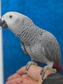 Disponibile pappagallo cenerino coda rossa Regolarmente documentato allevato a mano possibilità di consegna in tutta italia