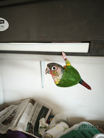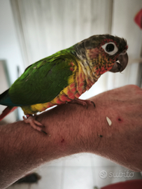 Conuro guance verdi ancestrale di 4 mesi allevato a mano, con regolare denuncia di nascita ed anello inamovibile. Maschio sessato