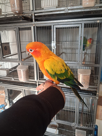 Disponibile pappagallo conuro del sole allevato a mano completo di gabbia