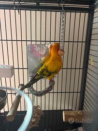 Vendo pappagallo di due anni, perché per problemi lavorativi non riusciamo a prendercene cura. allevato a mano, dolcissimo e già abituato al contatto umano. Mangia direttamente dalla mano ed è molto socievole, ideale anche per chi è alla prima esperienza. ? Abituato alla presenza delle persone ? Carattere affettuoso e giocoso ? In buona salute Perfetto come animale da compagnia per la famiglia. Il prezzo comprende anche la gabbia Per maggiori informazioni e foto, contattami